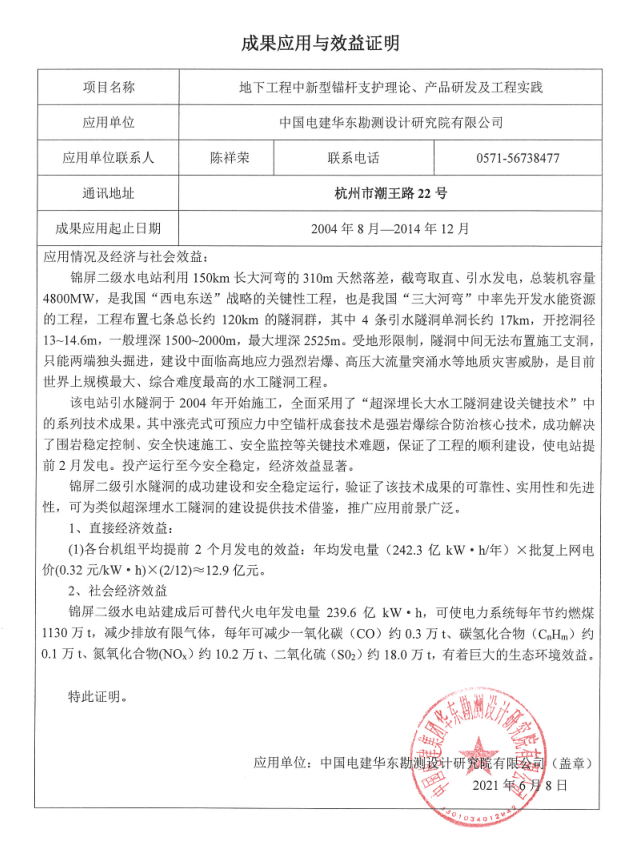 在腐蝕環(huán)境中可實(shí)現(xiàn)100年以上的使用壽命,填補(bǔ)了此項(xiàng)技術(shù)的國(guó)內(nèi)空白。項(xiàng)目在2009年膠州灣海底隧道已得到成功應(yīng)用,至今效果明顯。膠州灣二隧道正在應(yīng)用中。更是將在海南海底通道、以及煙大海底隧道、臺(tái)灣海峽隧道等開挖支護(hù)中提供有力保障。